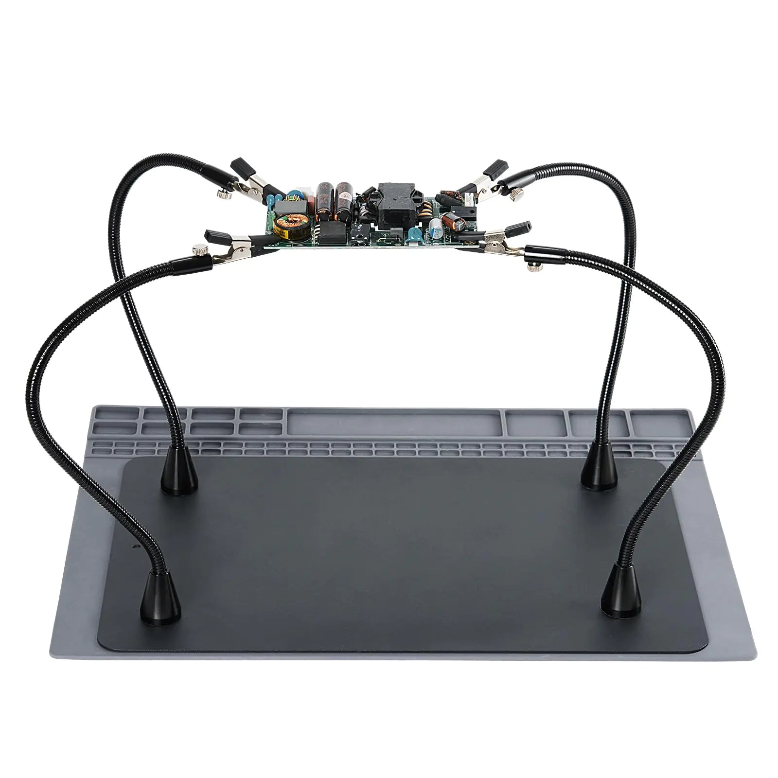 TOMLOV SH01 Helping Hands Soldering Station Flexible Third Hand Soldering Tool with 15.8x11.8 inch Magnetic Soldering Mat for Electronic Repair Large & Heavy Duty Iron BaseSoldering Jewelry Crafts